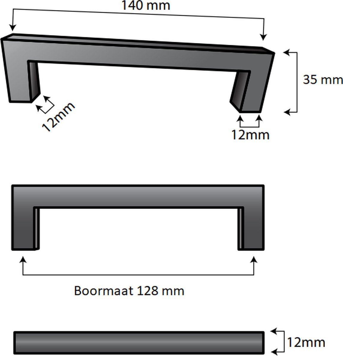 The hole spacing of this handle is 128 mm.