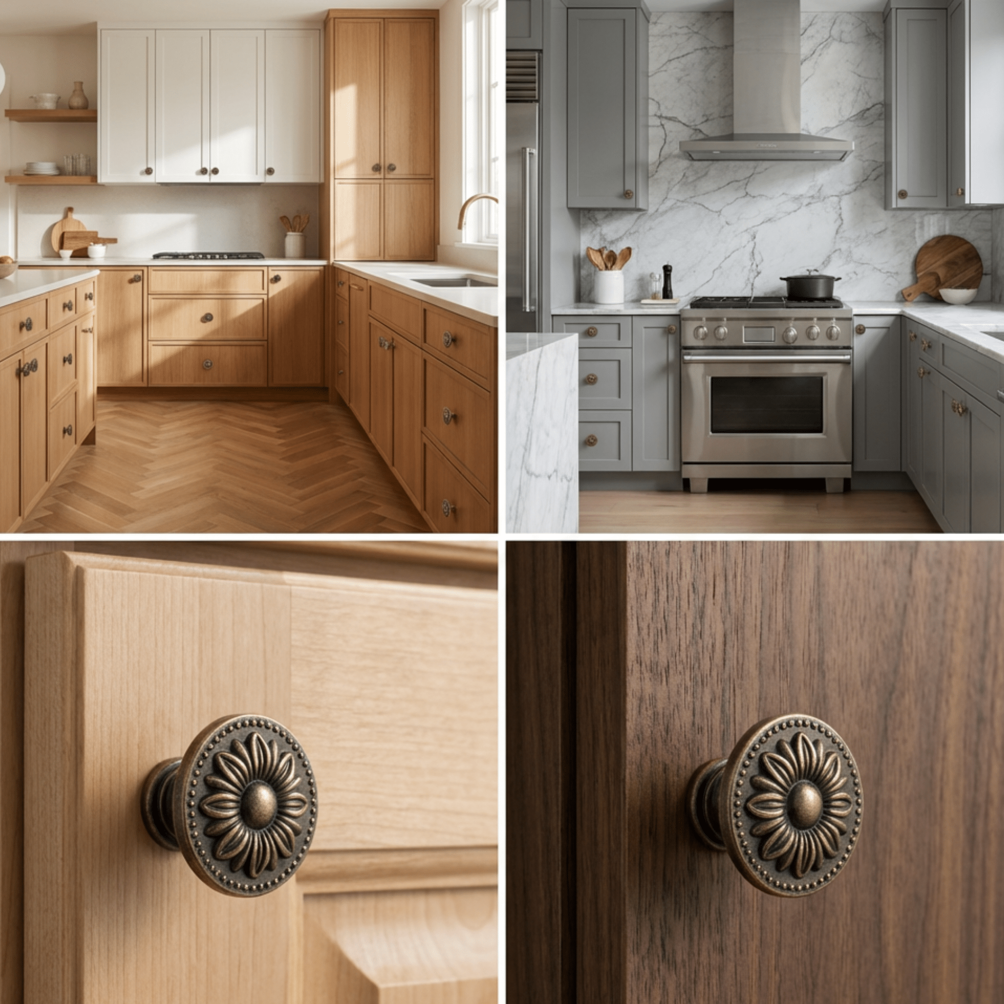 Bij knoppen let u vooral op de diameter, hoogte en de diameter van de voet. Kies wat prettig in de hand ligt en visueel past bij uw fronten.