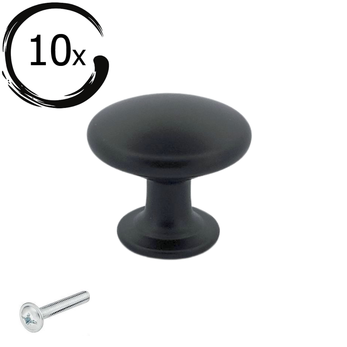 10X Kastknop / Meubelknop Macon 27 mm Aluminium Zwart Set 10